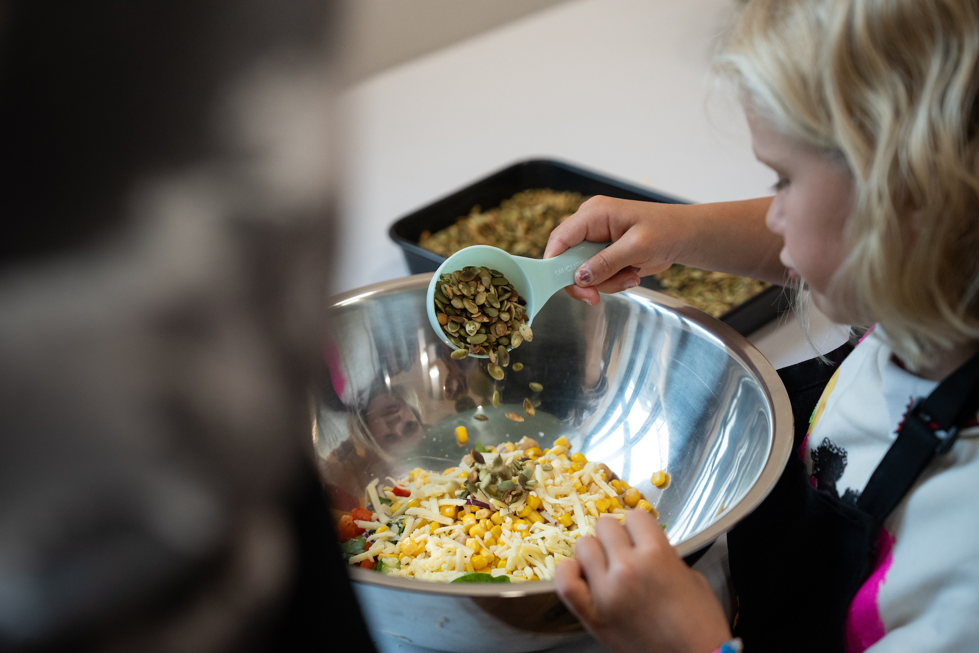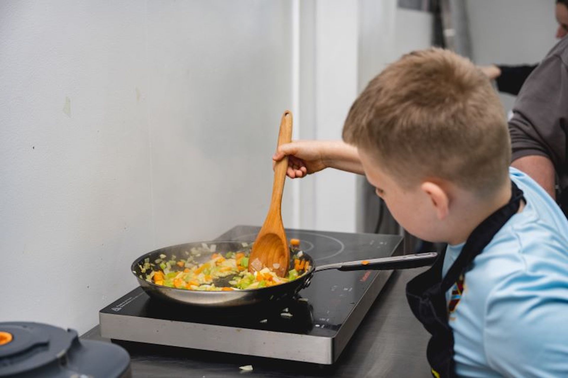 Rydym yn cynnal gweithdai bwyd dan arweiniad tîm o gogyddion o fyd lletygarwch ar draws Cymru. O sesiynau coginio mewn ysgolion i gyrsiau i oedolion ac o sesiynau coginio teuluol i wleddoedd cymunedol, rydym am newid bywydau trwy bwyd.